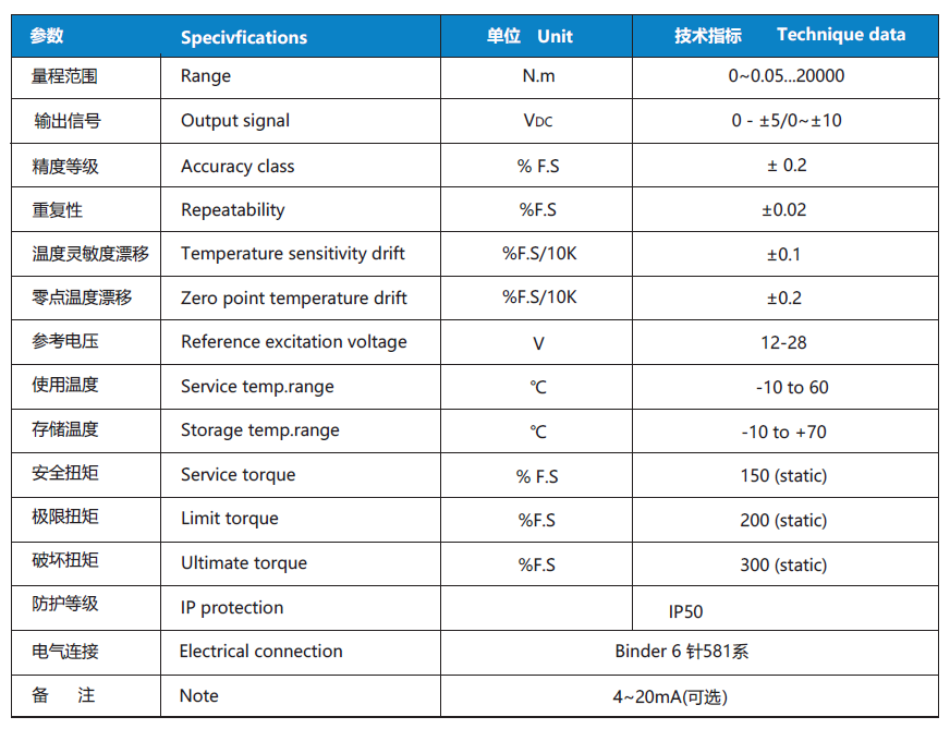 输出:1mv/V、0~±5/10V、4~20mA可选
